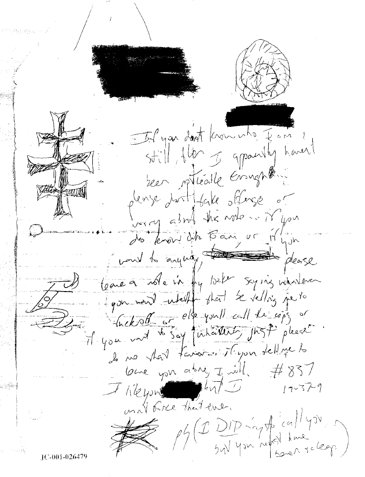 [edited] ,If you dont know who I am still then I apparently haven't been noticeable enough.... please dont take offense or worry about this note... if you do know who I am, or if you want to anyway, please leave me a note in my locker saying whatever you want whether that be telling me to fuck off or else youll call the cops, or if you want to say whatever, just pleasedo me that favor... if you tell me to