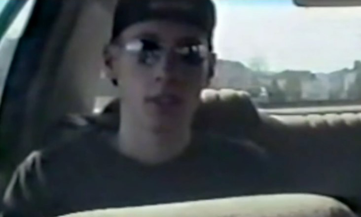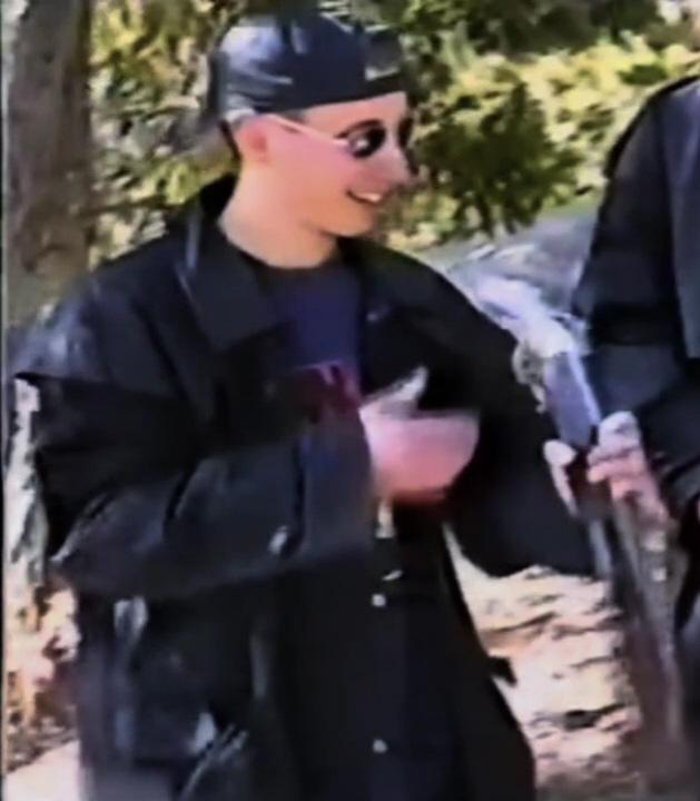 Photos of Eric Harris in his senior year from videos he made. Some were made on campus at Columbine High and show him with weapons similar to the guns he used during the massacre.