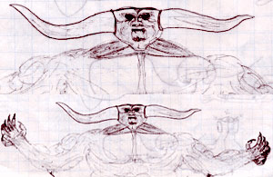 Close-ups of the drawings on Eric Harris' notebook page, excerpted from the Columbine Report. Click the images to see the bigger pictures. You can see more sketches here.