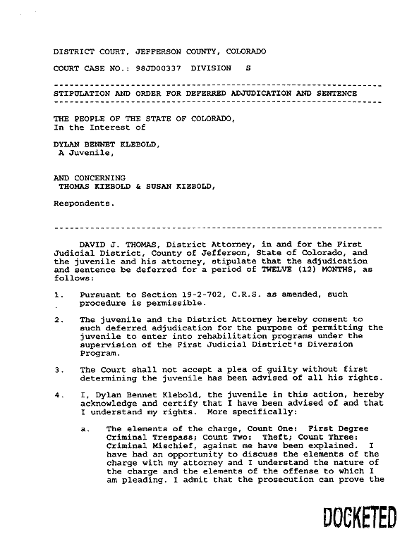 diary detailing the times Eric had gotten into trouble with the law and with classmates. And when Tom Klebold got the call about the shooting, he went down to the school and told officers he thought his son might be involved.