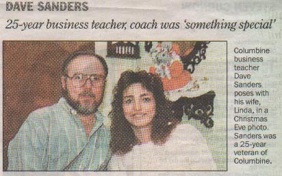 William "Dave" Sanders was a computer and business teacher at Columbine for 25 years, and coach of the girls' basketball and softball teams. He left behind his wife, four children and five grandchildren.